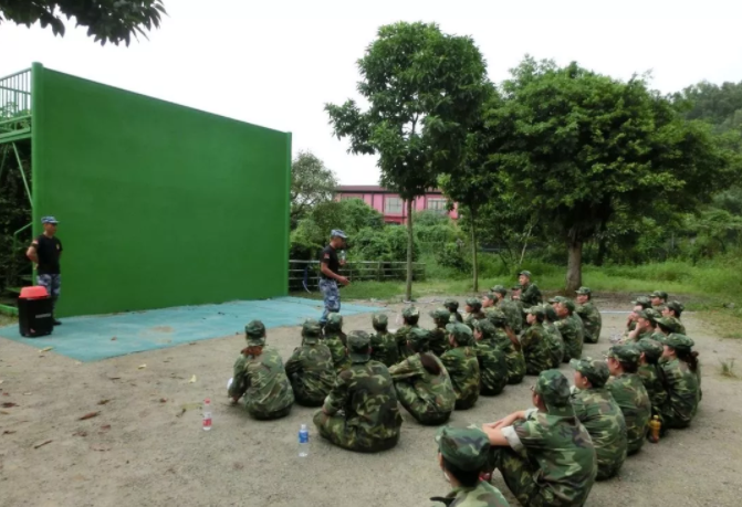 經過一個多小時到達廣州黃埔軍校拓展基地后,進行了開營儀式。正式進行拓展活動之前,徐教官將成員分成三個隊,要求三個隊選出隊長、副隊長、取隊名、想口號、繪制隊旗、選定隊目標。